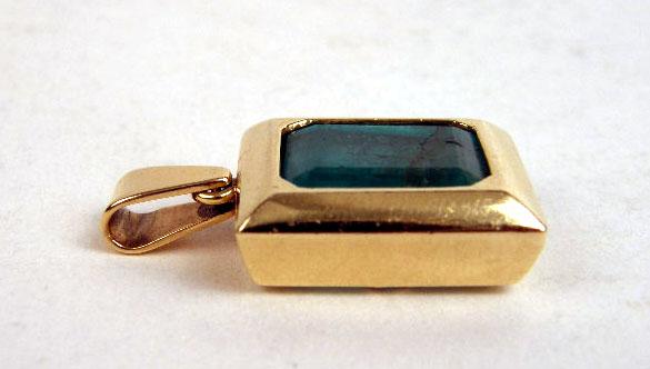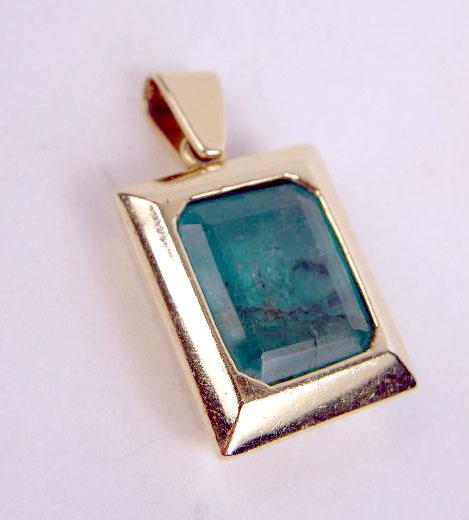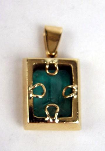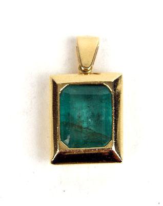 A 14K YELLOW GOLD MOUNTED RECTANGULAR EMERALD PENDANT