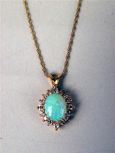 A 14K YELLOW GOLD, OPAL, AND DIAMOND PE