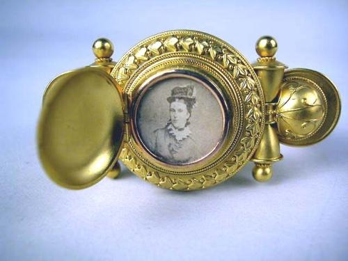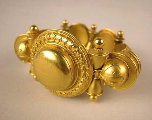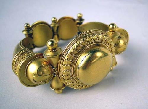A 14K YELLOW GOLD REPRODUCTION VICTORIAN LOCKET BRACELET IN ETRUSCAN MOTIF Apx. 42.9 dwt.