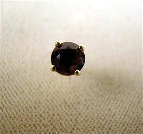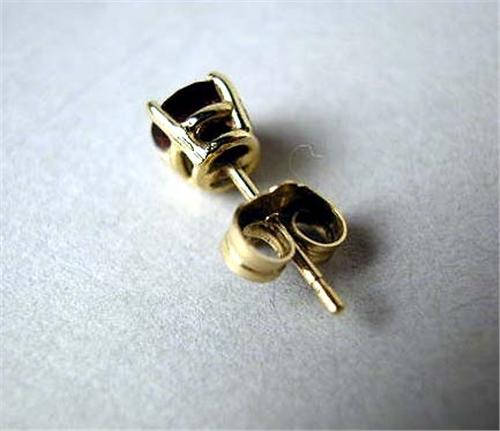 A 14K YELLOW GOLD STUD EARRING With one round red garnet