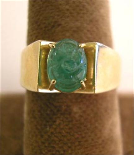 A 14K YELLOW GOLD WITH CENTER CARVED SCARAB EMERALD;