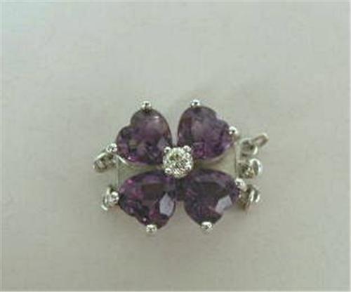 A 14KT WHITE GOLD VIOLET-FORM PEARL CLASP, the flower set with four faceted heart-form petals and small central diamond, 3/4"