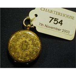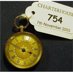 A 14ct Gold Fob Watch, with engraved decoration and Roman numerals