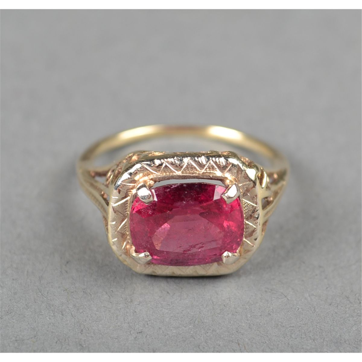 A 14kt Gold, And Rubellite Tourmaline Ring