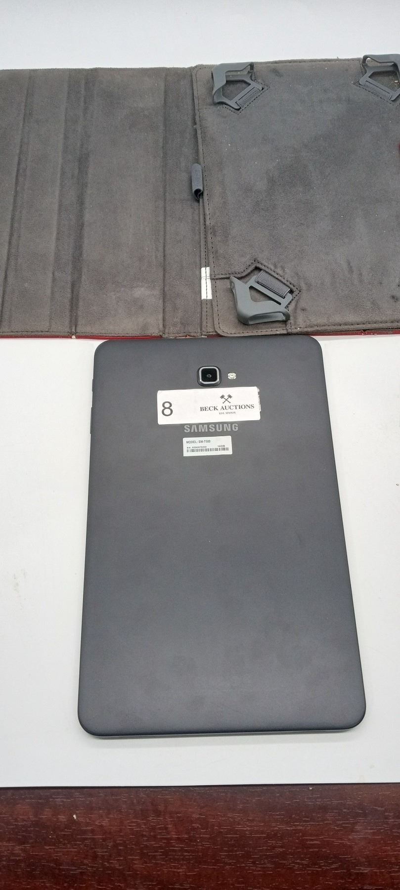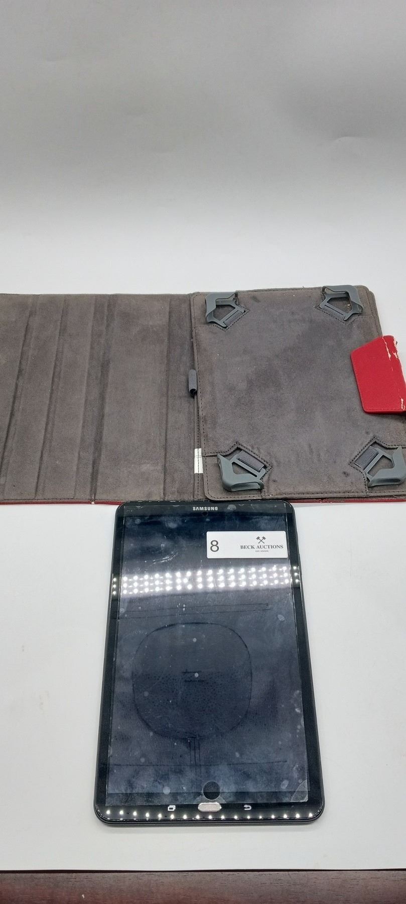 A Samsung Tablet with Leather Case/Expandable Storage; Featuring 16Gb of Storage.