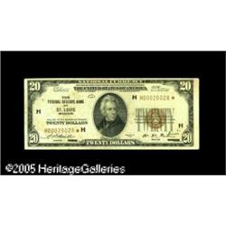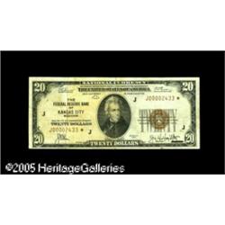 <B>A 1929 $20 FRBN Star Trio, Including</B></I> Philadelphia <B>Fine+,</B></I> St. Louis <B>Fine,</B></I> and Kansas City <B>Very Fine</B></I> with stains and soil on the back.<BR> 3 notes Lot:15775