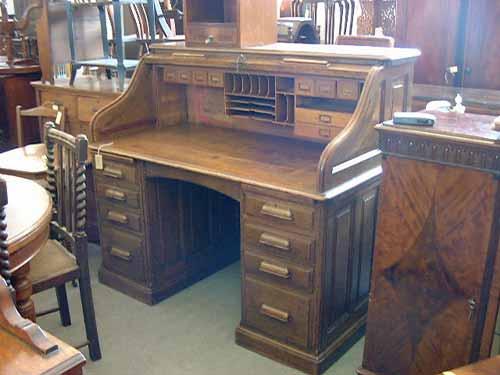 A 1930's oak roll top desk, H 125cms W 138cms £250-350