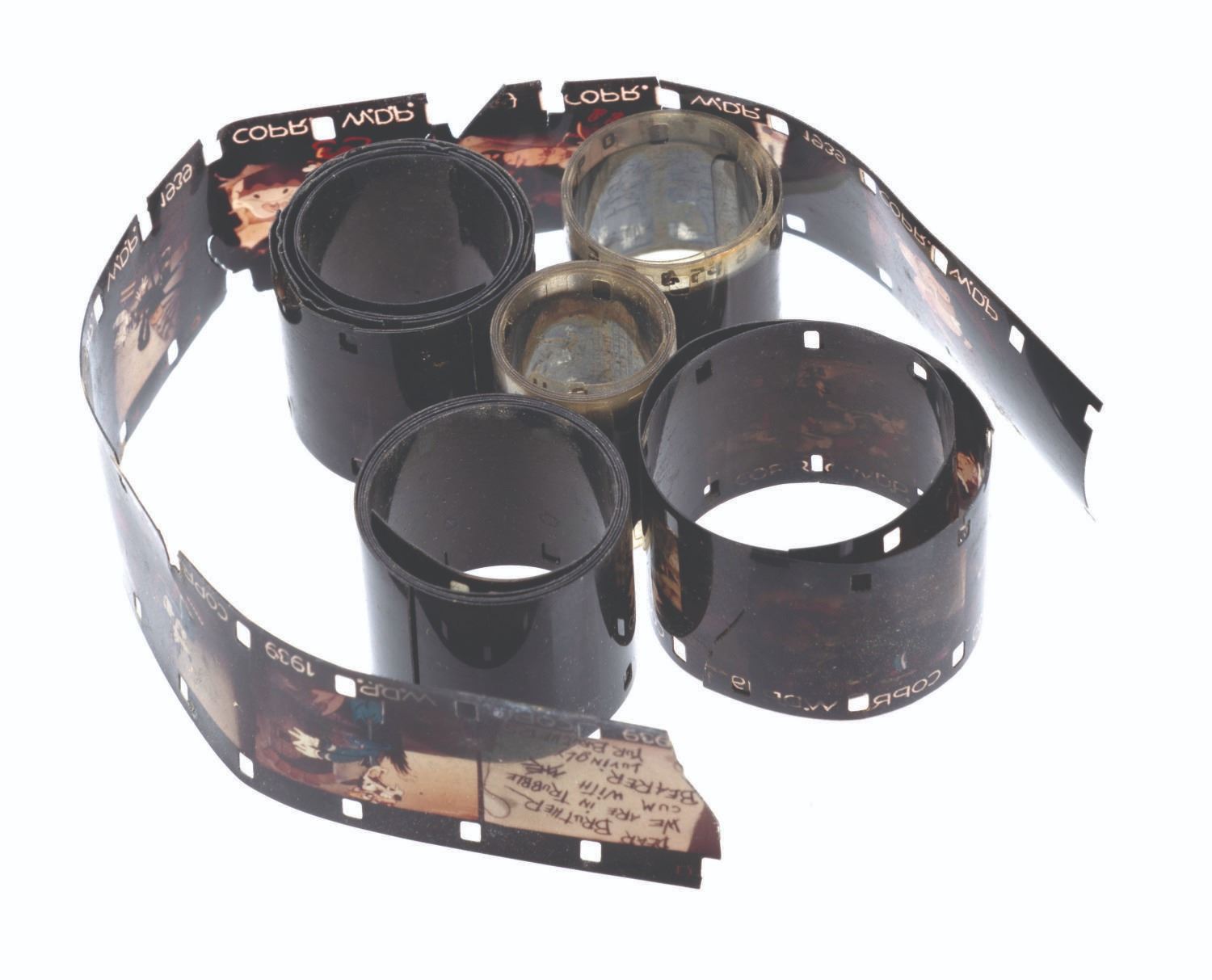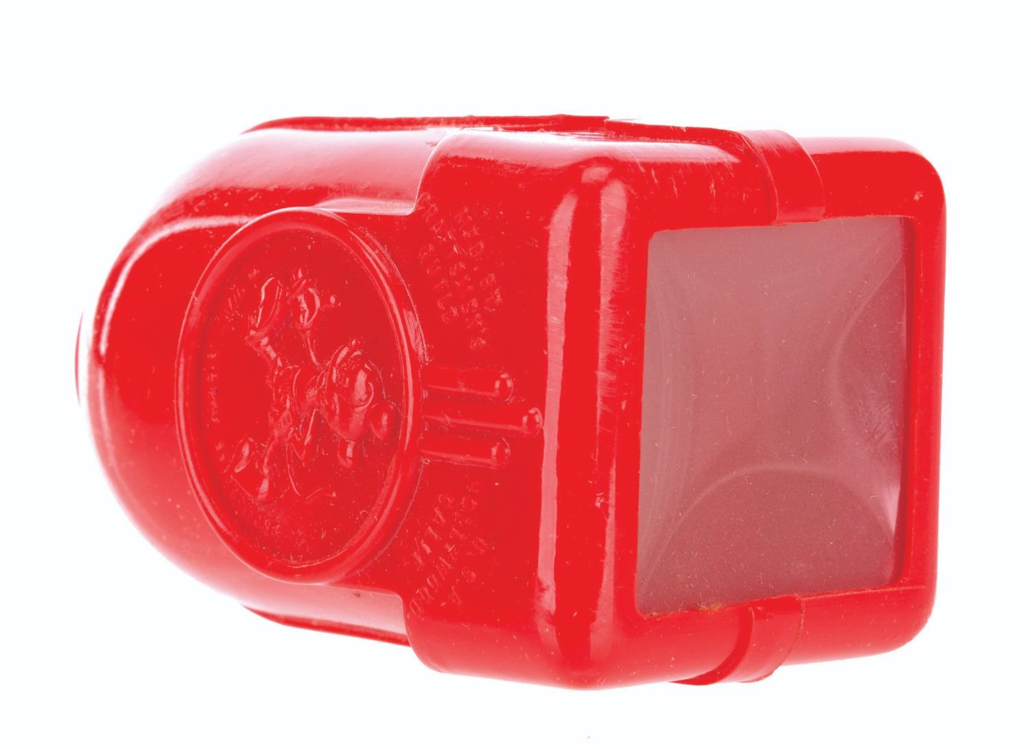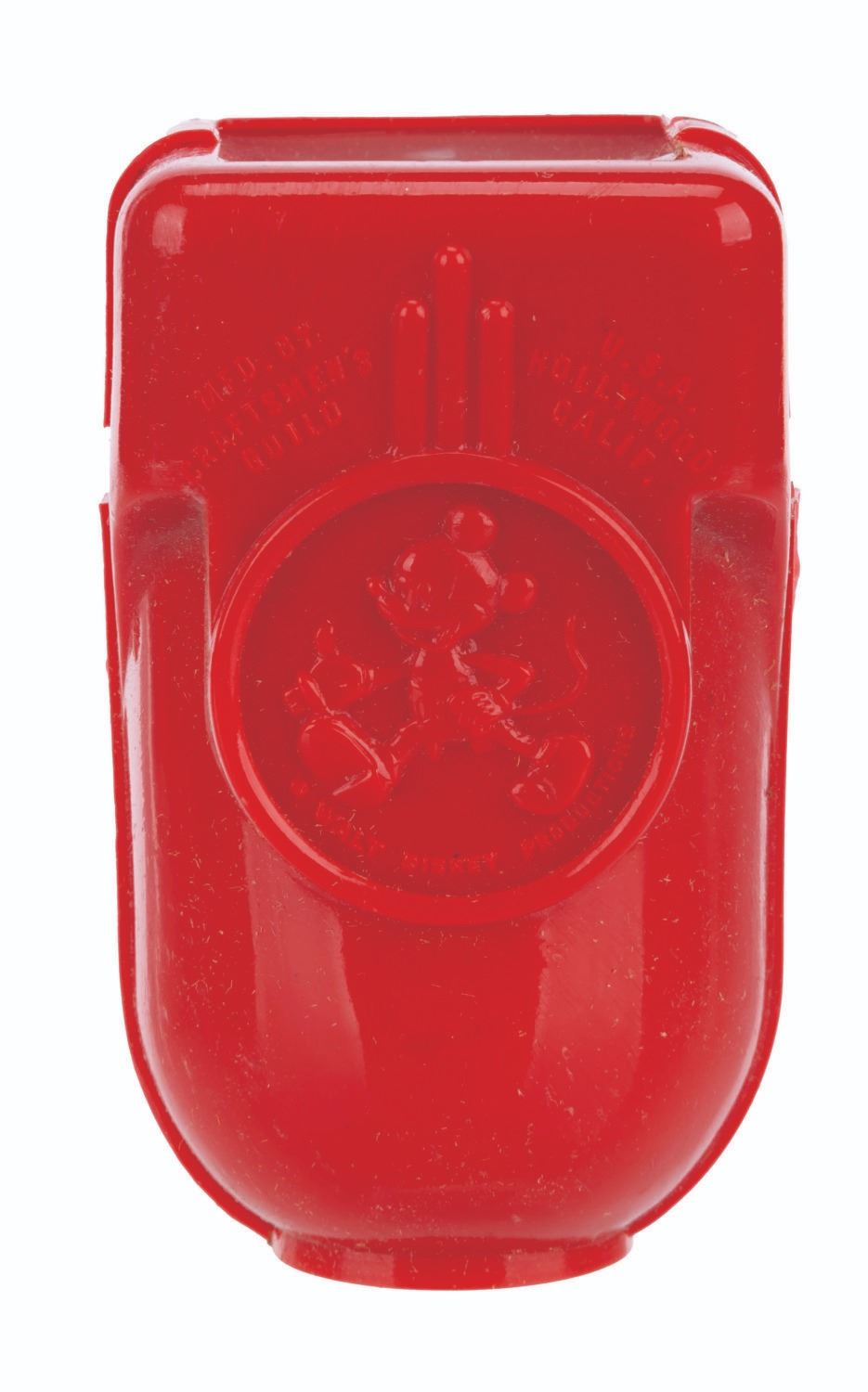(Craftsman Guild, 1940s) A Mickey Mouse Viewer and Walt Disney Film Strip in Full Color with the original box, manufactured by Craftsman Guild. The viewer comes with 16 mm reels for “Brave Little Tailor,” “The Golden Touch,” a Three Little Pigs short, and two non-Disney reels, which were not included in the original set. Measuring 1.5” x 1.5” x 3” tall with it 2” x 3.75” x 2” box, the viewer and reels are in good condition with scratches, stains, and wear, notably on the Three Little Pigs reel.