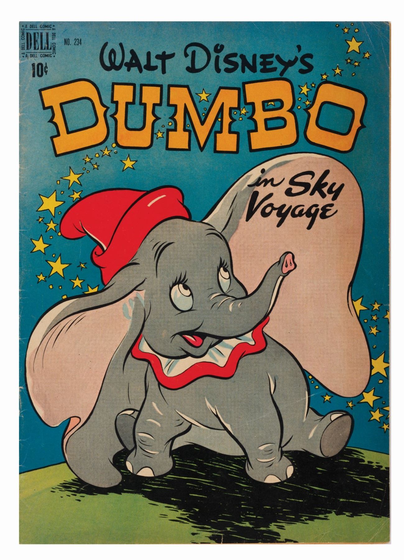 (Dell, 1949) A copy of "Walt Disney's Dumbo in Sky Voyage" comic book no. 234. Measuring 7.25" x 10.25", the comic is in good condition, with edge wear and page discoloration from age.