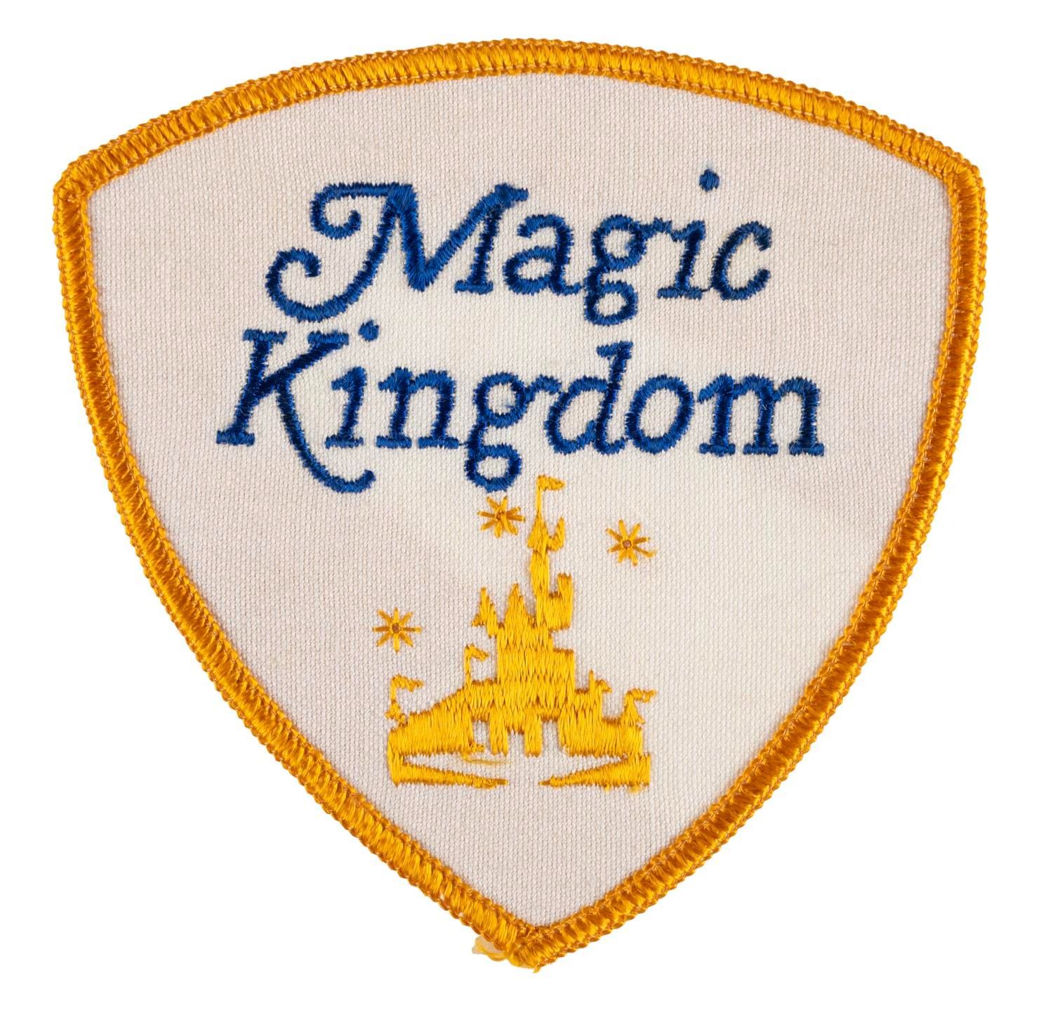 (Disneyland, 1950s) A very rare Magic Kingdom embroidered patch typically affixed to a Cast Member's costume. Measuring 3.5"x3.5", the patch is in very good condition with adhesive residue covering 2/3 of the reverse.