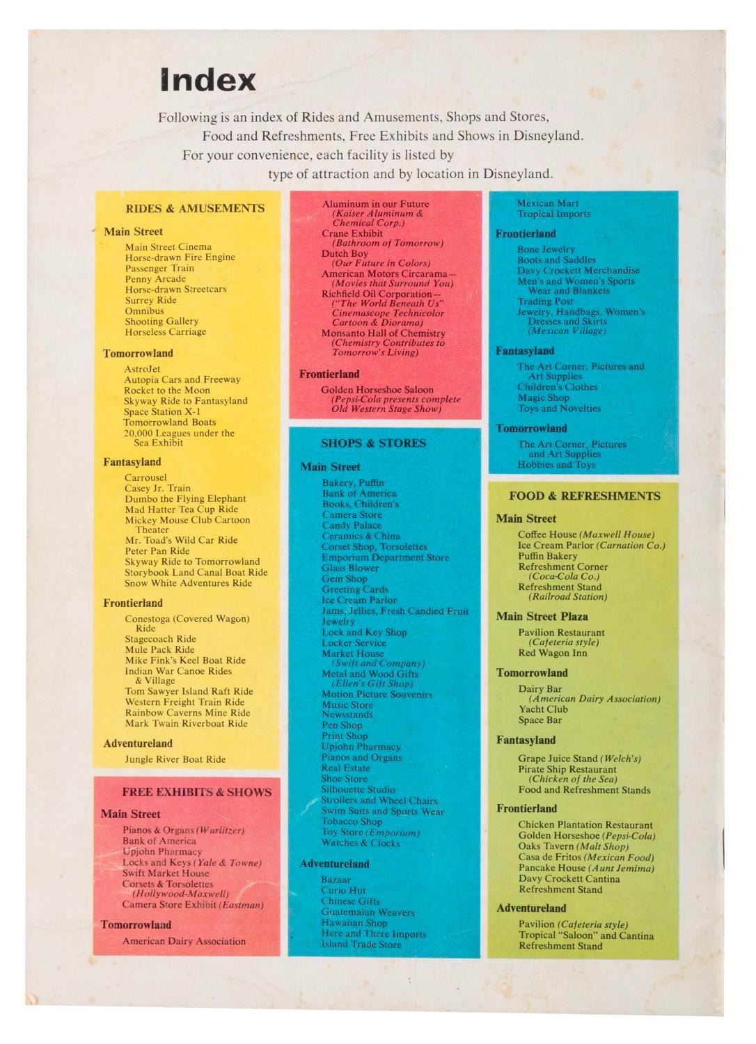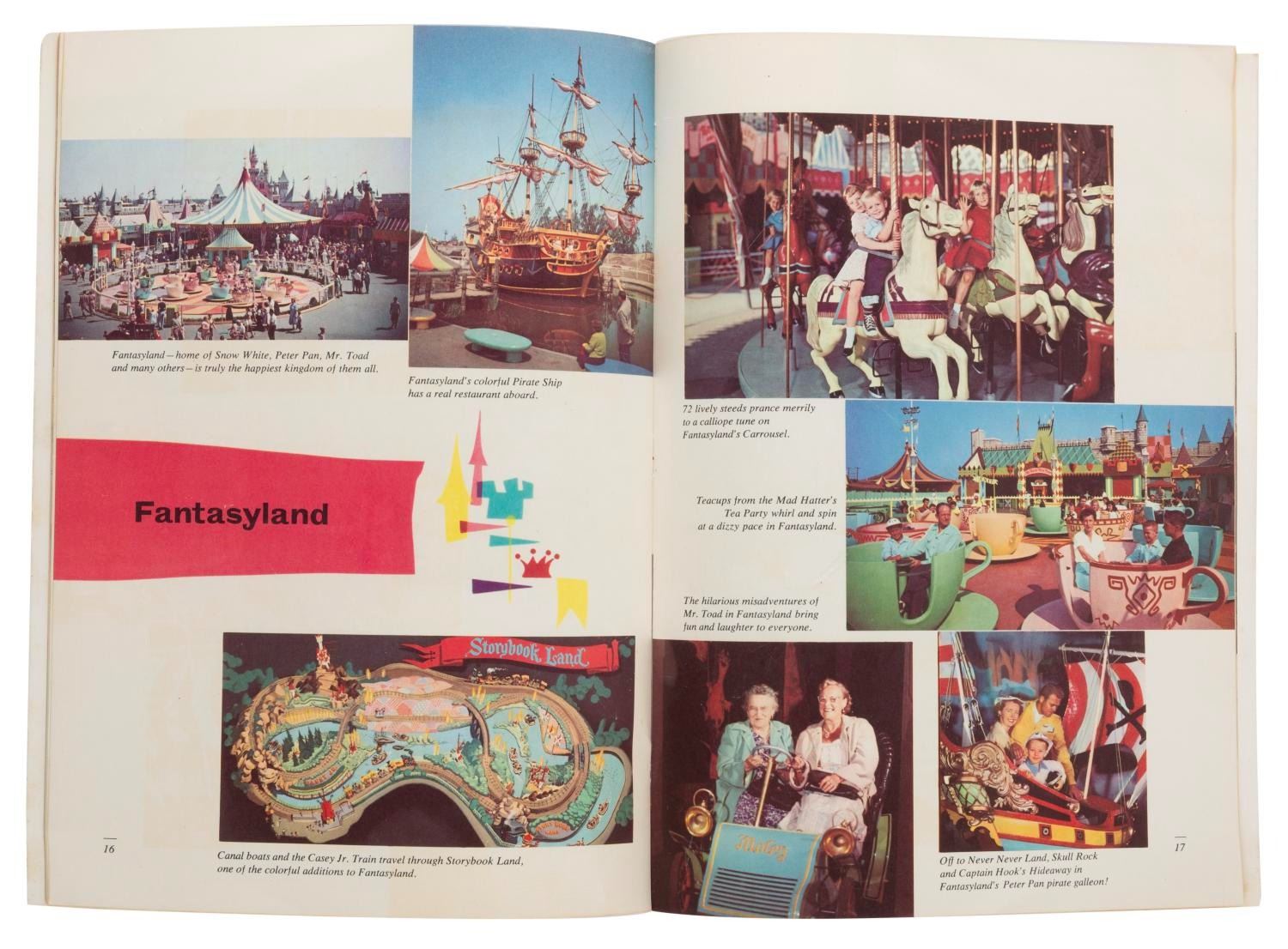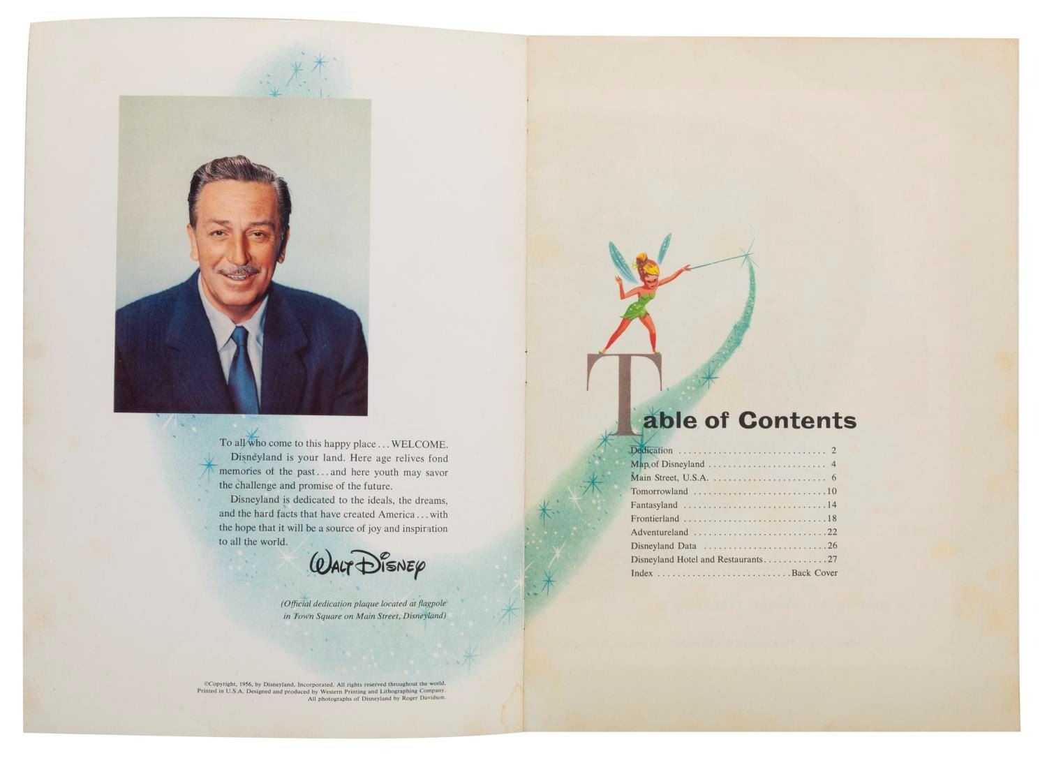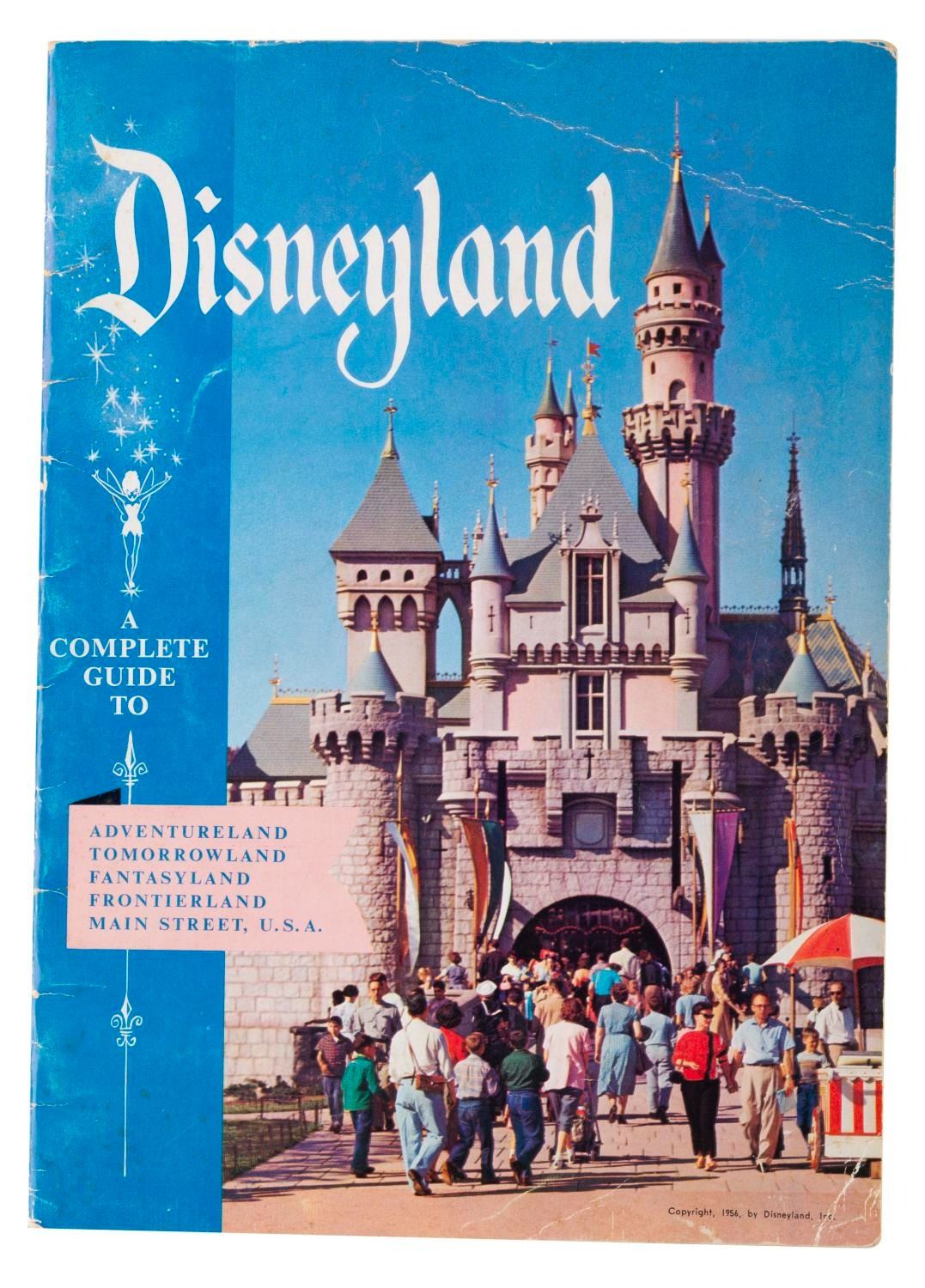 (Disneyland, 1956) An early Complete Guide to Disneyland book. The 27-page souvenir guidebook provides illustrations, full-color photographs, and maps of the Park. Measuring 8.25" x 11.5", the guide is in good condition with wear to the cover only, including creases, scuffs, and light spotting.