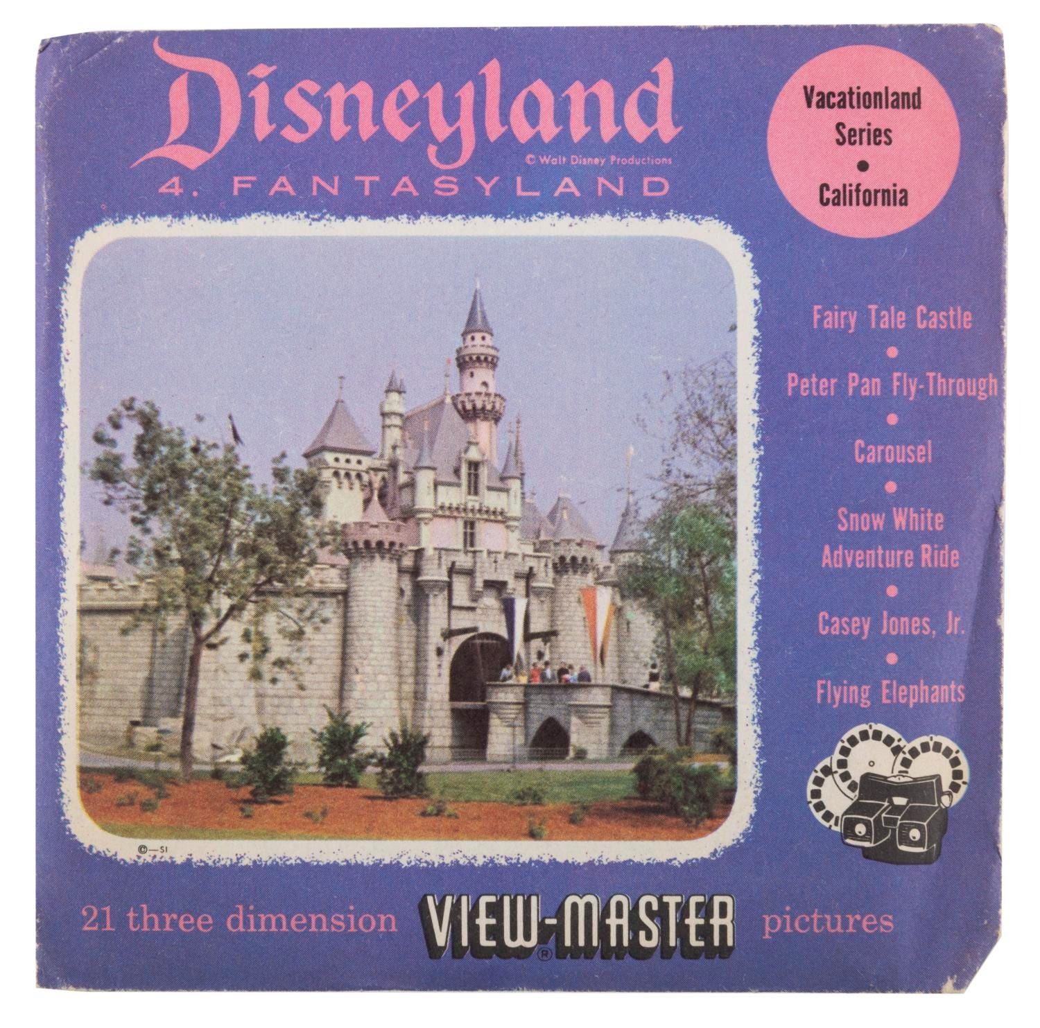 (Sawyer’s Inc., 1956) An early View-Master set featuring 21 3-D color pictures of Disneyland. The set is unopened, with the envelope in good condition with handling wear, and the reels presumed in fine condition inside.