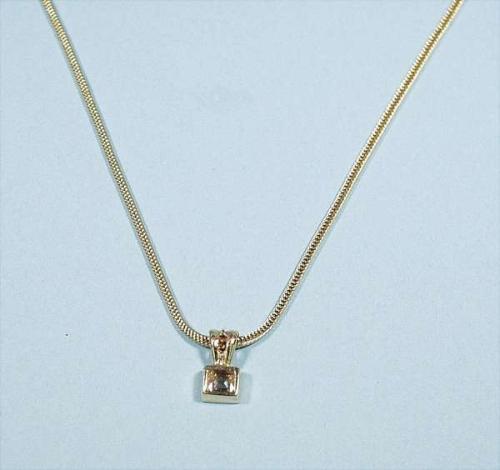 A 1960's 18 kt. gold pendant with matching chain. With a square cut diamond of 0.50 cts. of good colour and clarity. 3000-4000