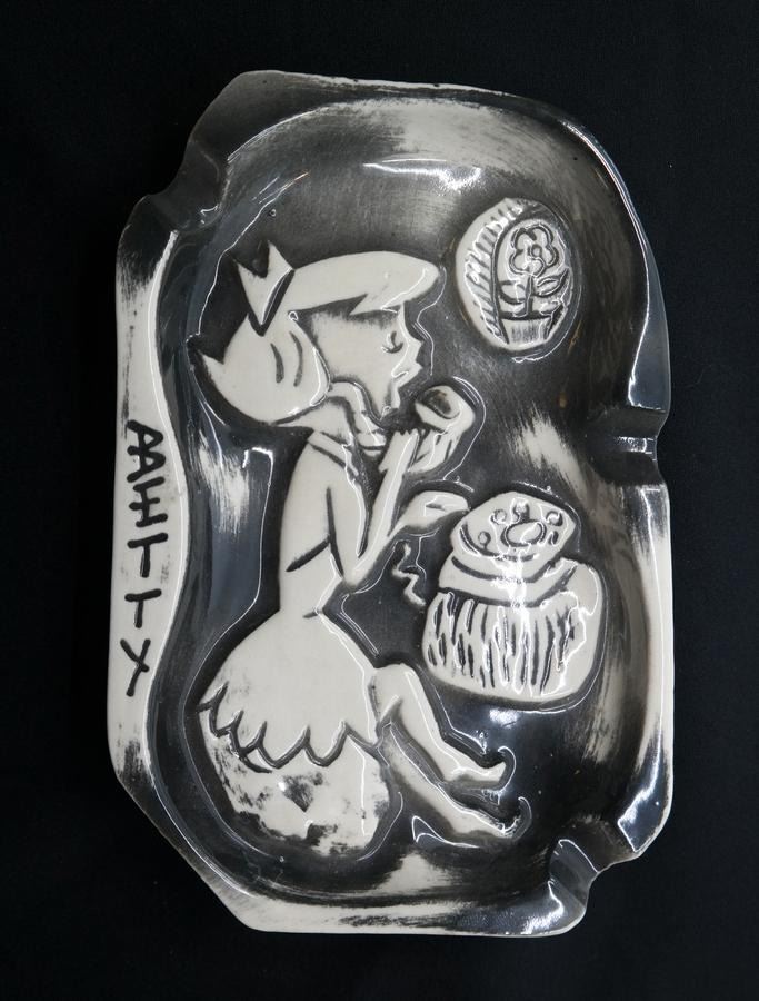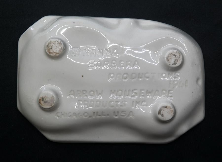 (Arrow Houseware Products, 1961) A ceramic ashtray of Betty Rubble from Hanna-Barbera’s"The Flintstones," produced by Arrow Houseware Products in Chicago, Illinois. and attributed to American Bisque pottery. Measuring 5.5"x 8", the ashtray is in very fine condition with a spot of adhesive residue to the reverse from a previous price tag.