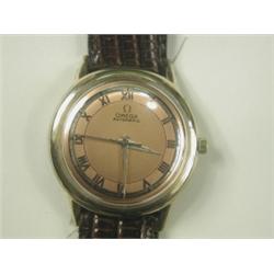 A 1960s gents Omega automatic watch with a coppered and silvered dial, 10k gold filled bezel, on a leather strap