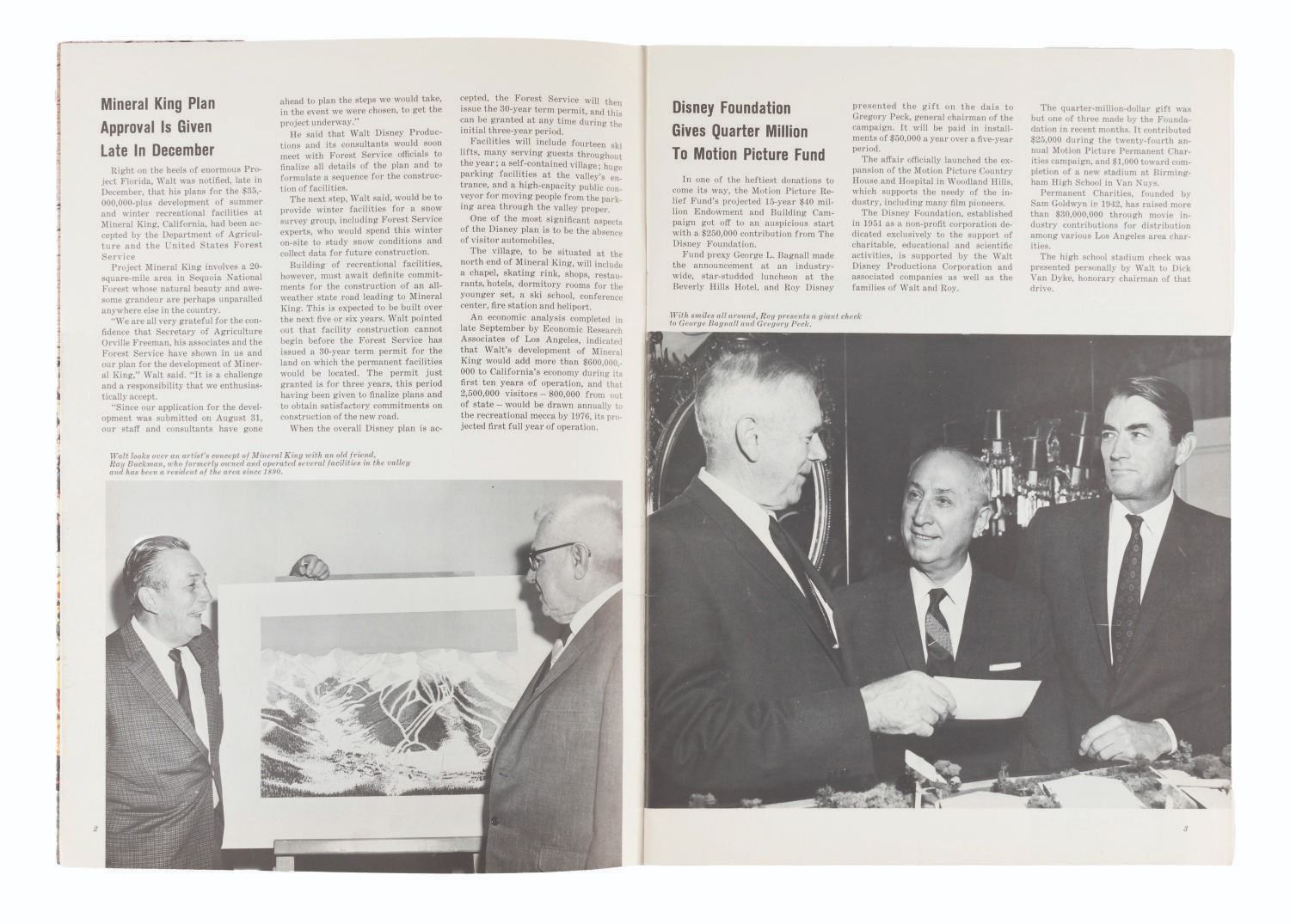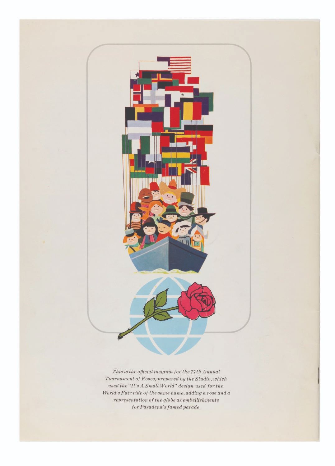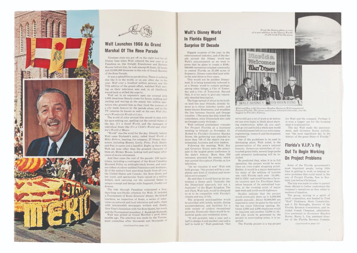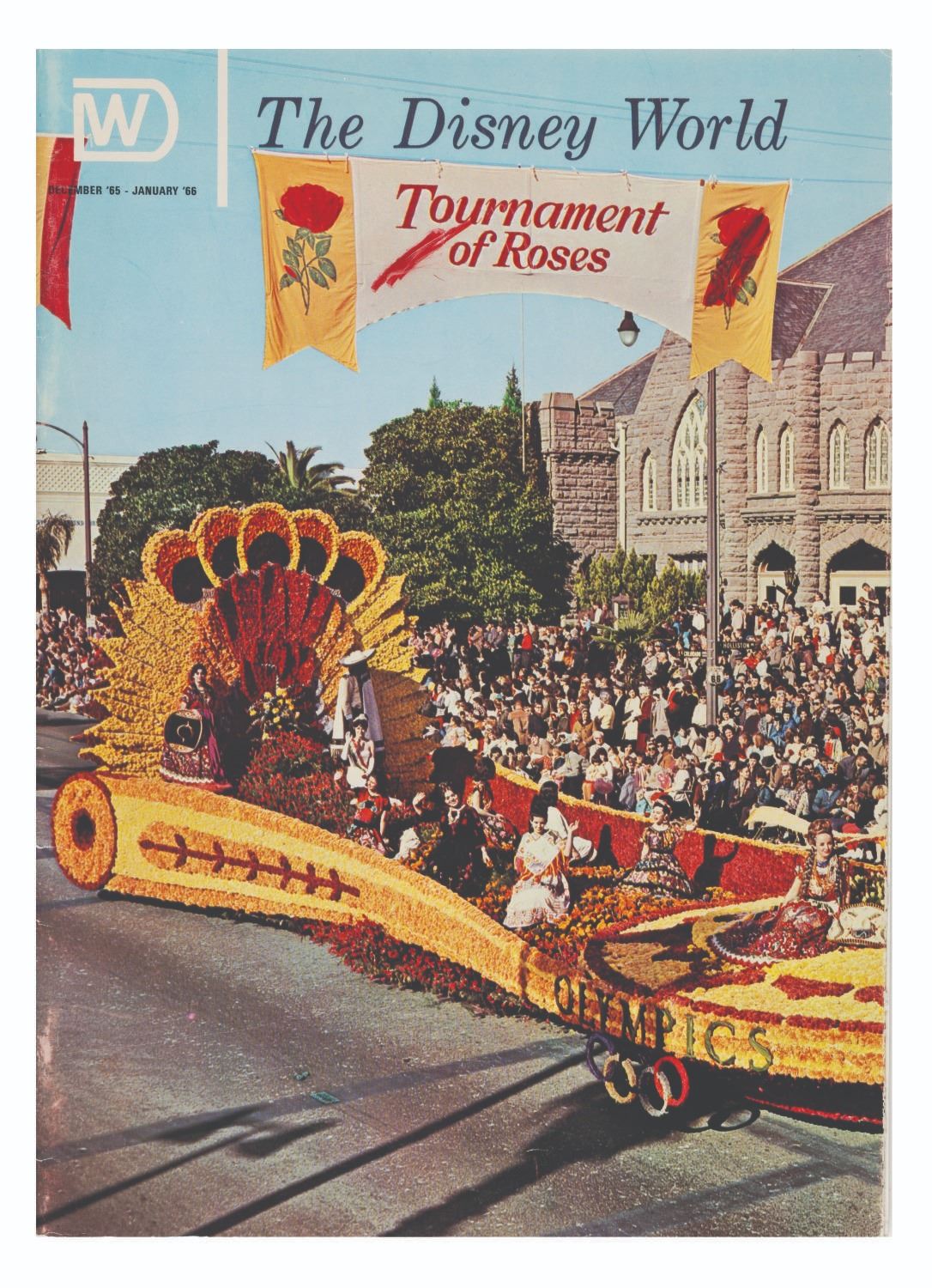 (Disney, 1965) A copy of The Disney World magazine, issue Vol.3 No. 6 from December 1965 featuring a cover story on the Tournament of Roses. Measuring 8.5" x 11.75", the magazine is in good condition with edge wear, very light scratches and two red grease pencil markings to the cover, and discoloration from age.
