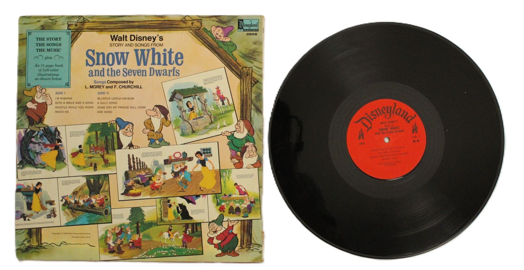 Walt Disney's Story and Songs from Snow White and the Seven Dwarfs. A magnificent full-color illustrated book and LP. Sleeve is in good condition and shows wear from use and age. a small tear presents at the spine. The record is great condition and may have small scratches from use. The story book insert is in great condition.