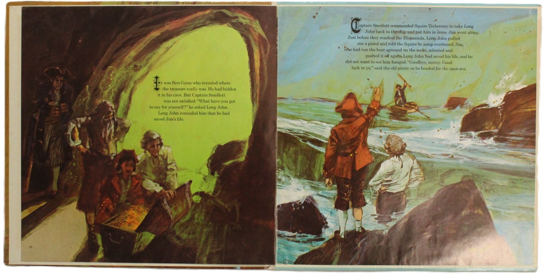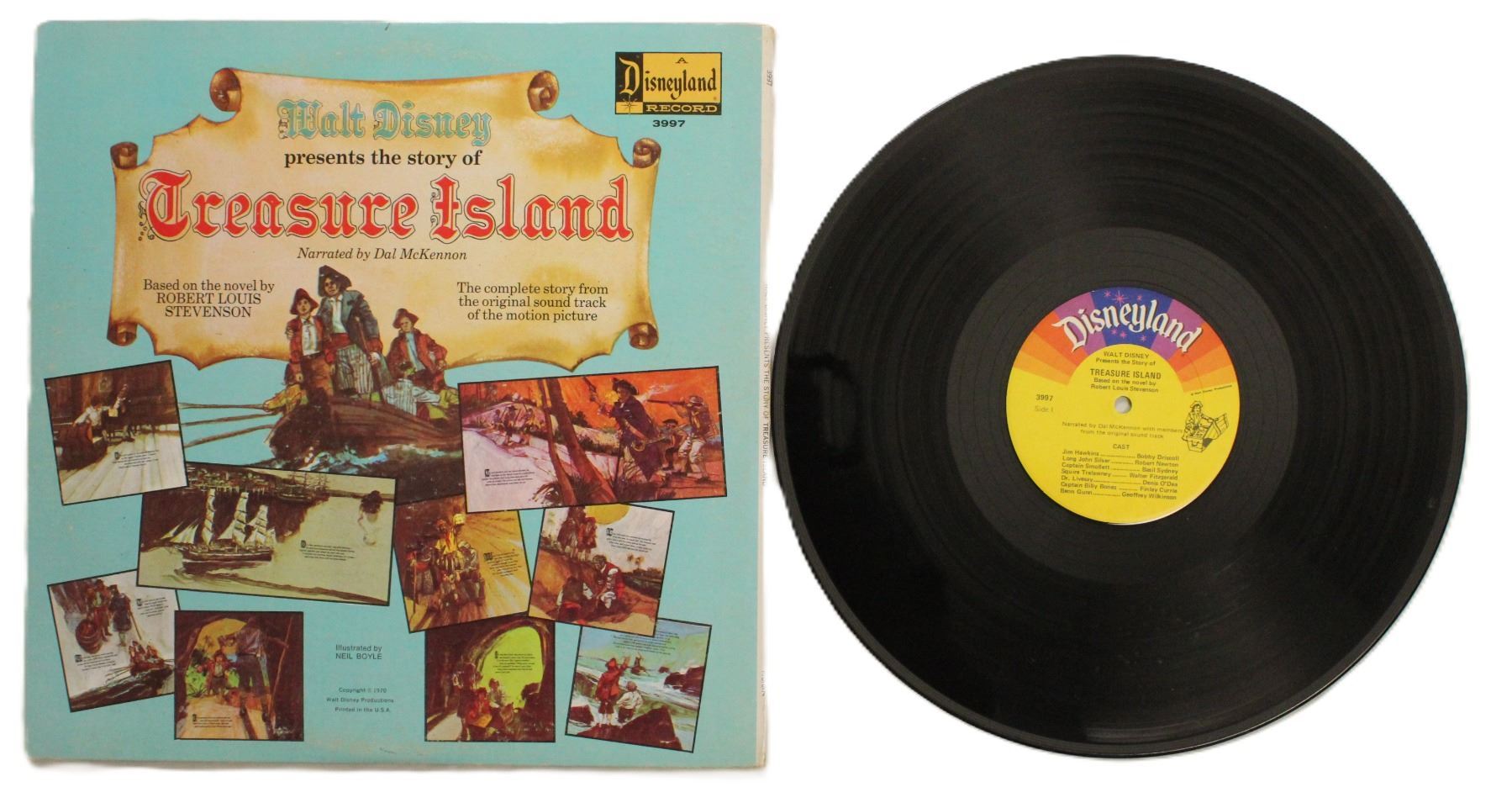 Based on the novel by Robert Louis Stevenson, Wal Disney presents the story of Treasure Island. The complete story from the original soundtrack of the motion picture is narrated by Dal McKennon and members from the original soundtrack. The Cover is in great condition with normal wear from agfe and use. The record is in excellent condition but may have a scratch from use.
