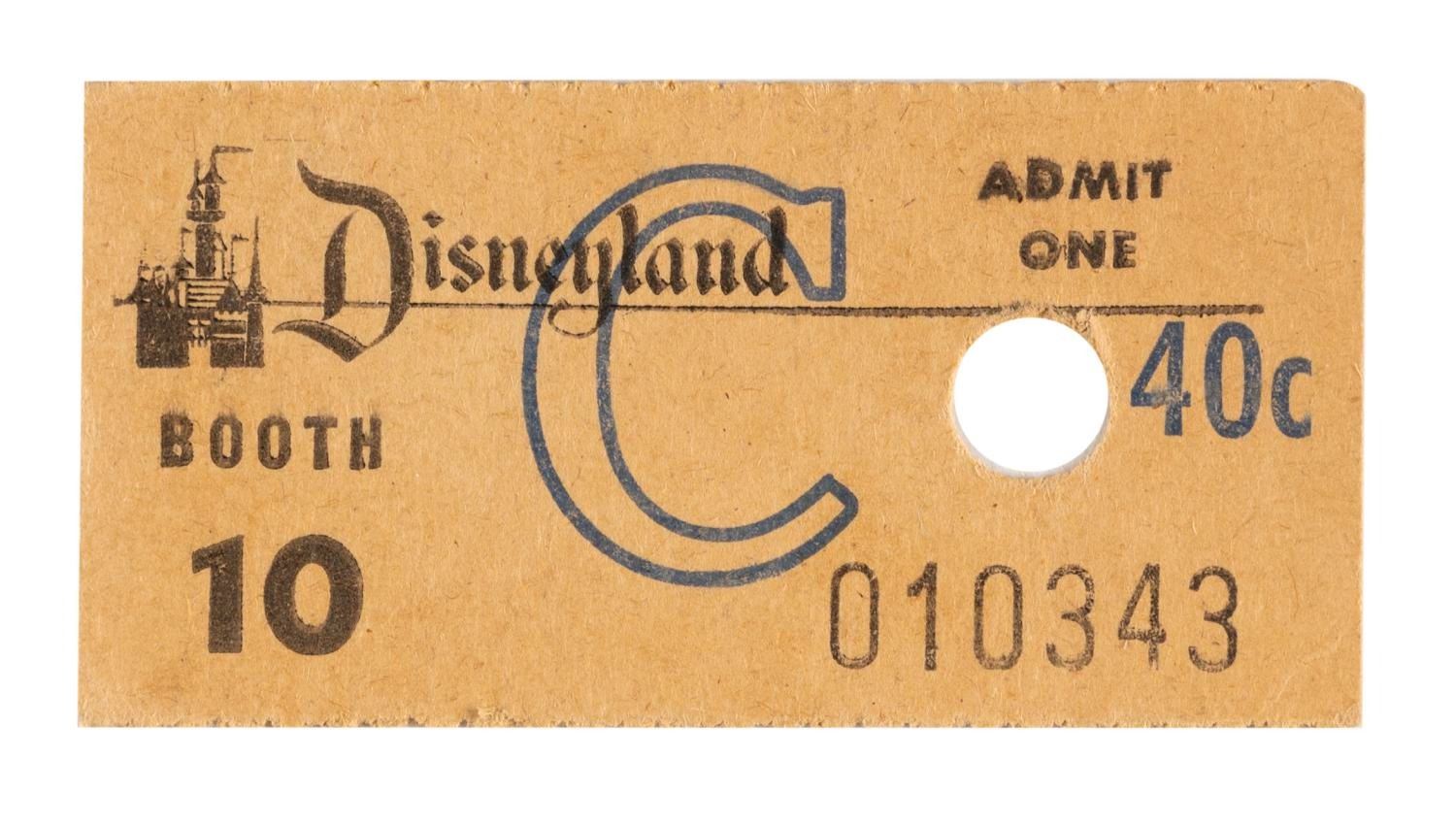(Disneyland, 1970s) A 40-cent “C” ticket from a ticket booth during the 1970s. Aside from the iconic discount ticket books, individual ride tickets could be purchased at booths throughout Disneyland. The ticket is in very good condition.