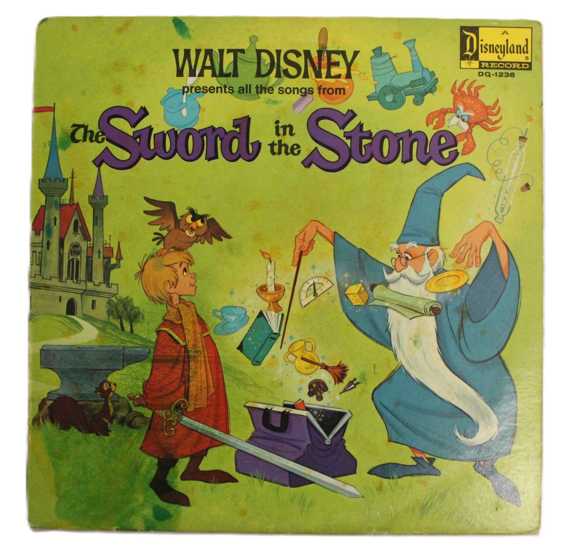 Walt Disney Presents all the songs from The Sword in the Stone. All the songs are by the Sherman Brothers. The Sleeve is good condition with some blue paint smudges on the cover. The record is in excellent condition and may have small scratches from use.