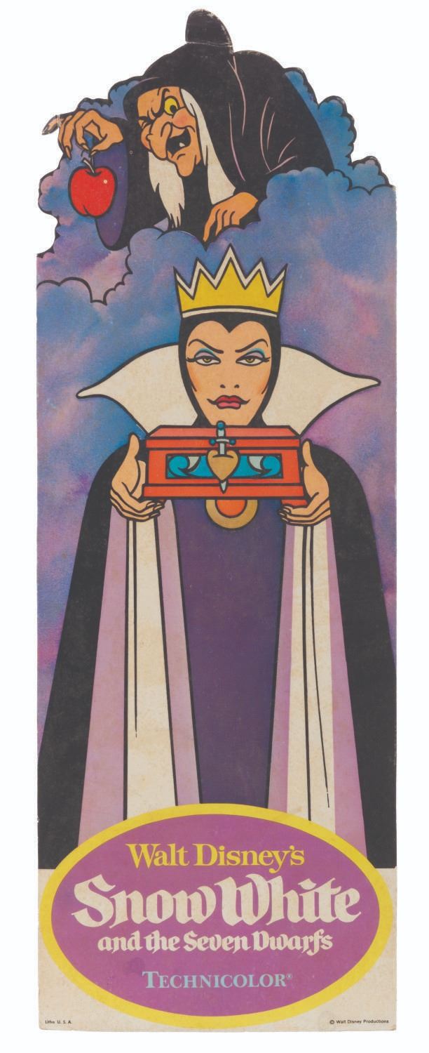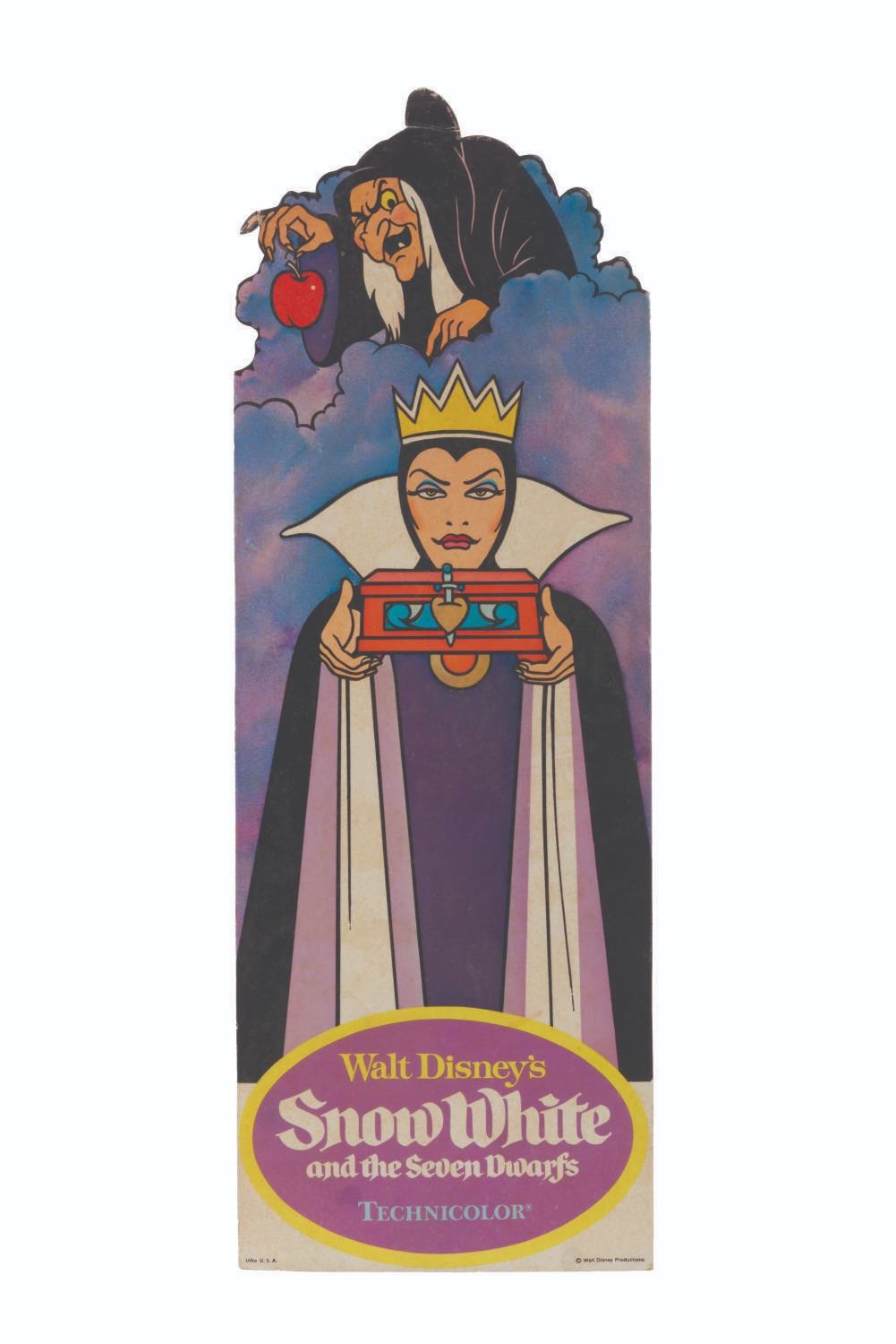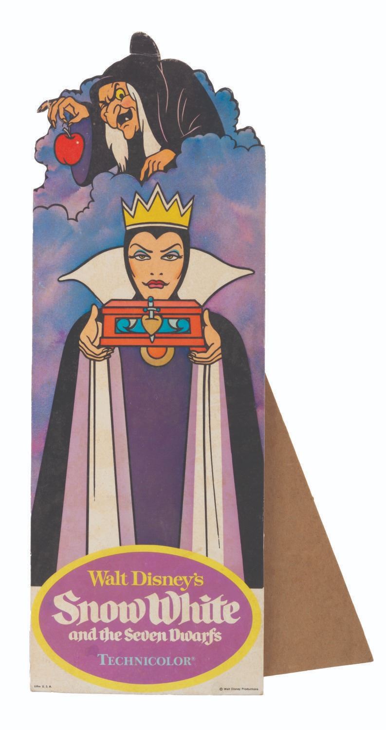(Disney, 1975 A countertop display for the 1975 theatrical re-release of “Snow White and the Seven Dwarfs.” Measuring 5” x 14” tall, the display is in good condition with handling wear, discoloration from age, and wear to the top point.