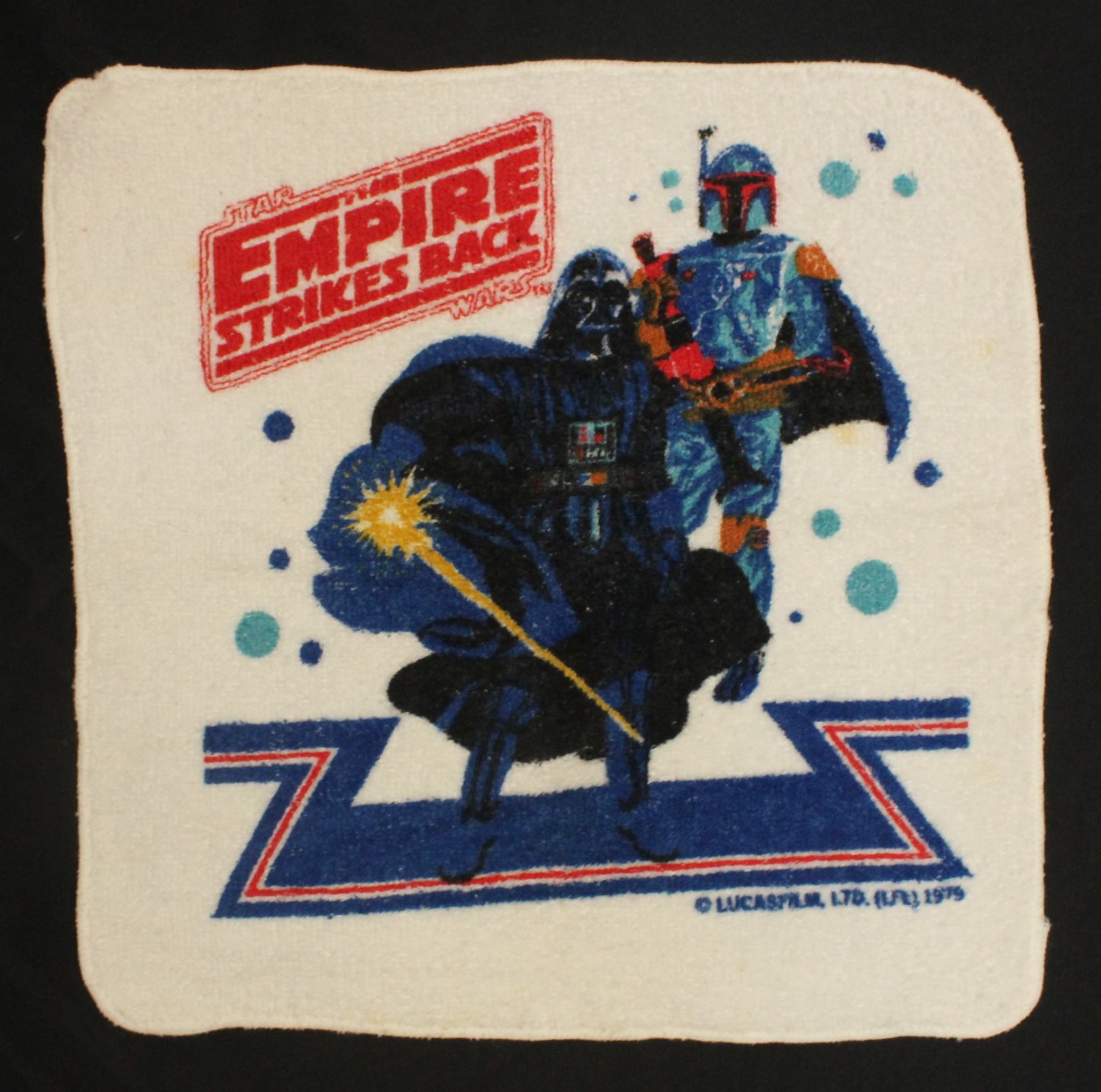 This vintage facecloth is in near mint condition, appears never used and features Darth vader and Boba Fett. It reads Copyright Lucasfilm, LTD. (LFL) 1979 on the bottom right.