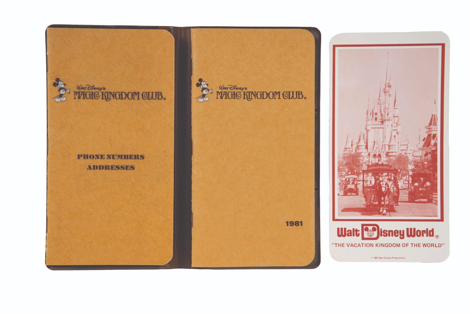 (Walt Disney World, 1981) A souvenir pocket calendar and almanac for members of the Magic Kingdom Club. Measuring 7.25" x 4", the vinyl cover and pages are in very good unused condition.