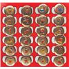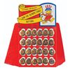 (L.A. Olympics Committee, 1984) A complete countertop display of 24 buttons featuring the Olympic Mascot Sam the Eagle. Sam was designed by Disney Legend Bob Moore. Measuring 17" x 10" x 4" standing, the display is in very good condition with light wear and a price written in ink by Sam's hat. The 1.75" gold-colored buttons are in very good to fine condition.
