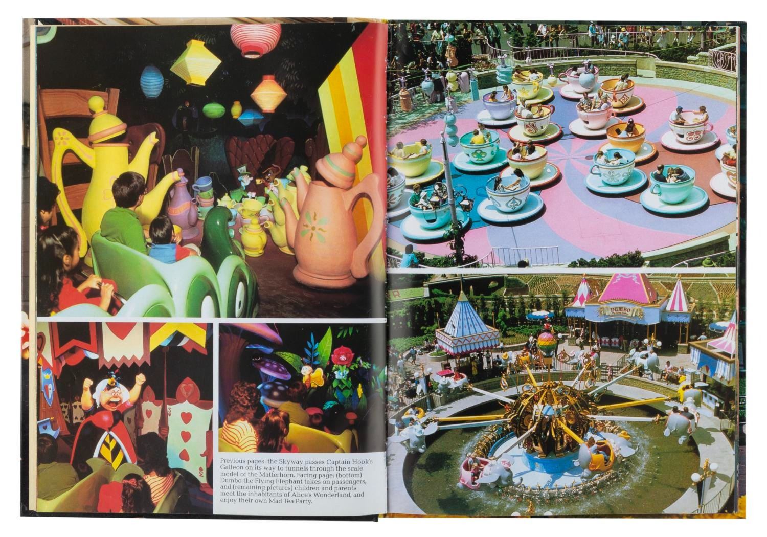 (Crescent, 1985) A hardcover “Disneyland book featuring colorful photography throughout the Park. Measuring 7.75” x 10.5”, the book is in very good condition with a name written inside the back cover.