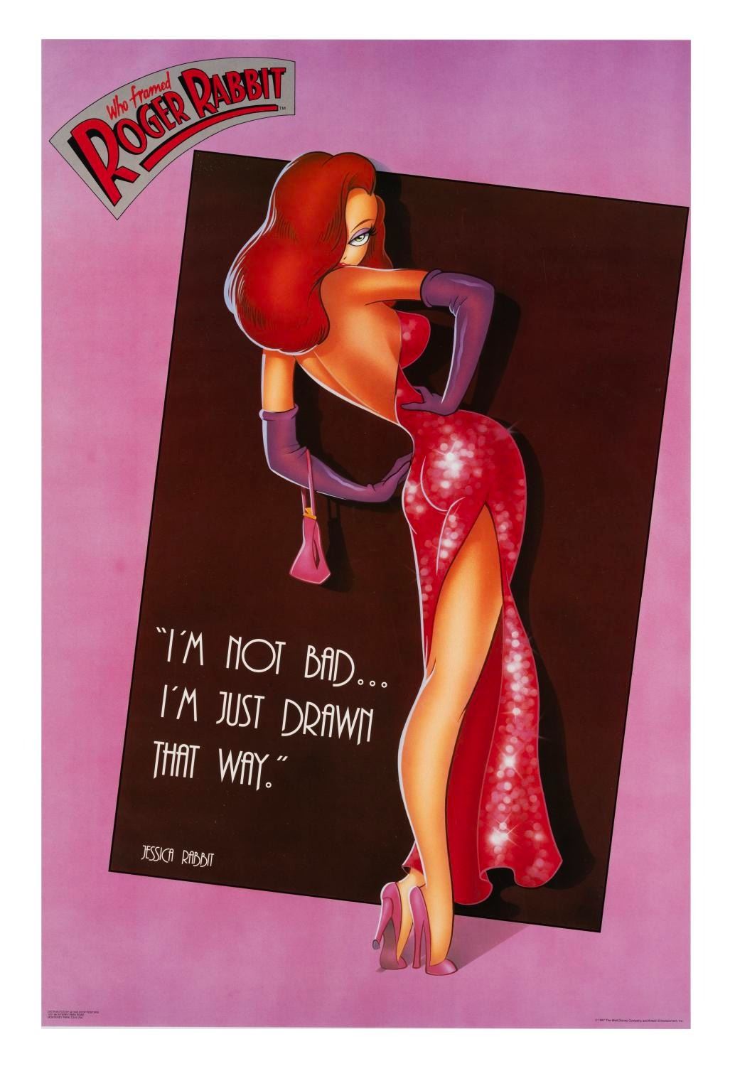 (Disney, 1987) A large poster for "Who Framed Roger Rabbit" featuring the sultry Jessica Rabbit, distributed by One-Stop Posters. Measuring 23" x 35", the poster is in very good condition with light handling wear.