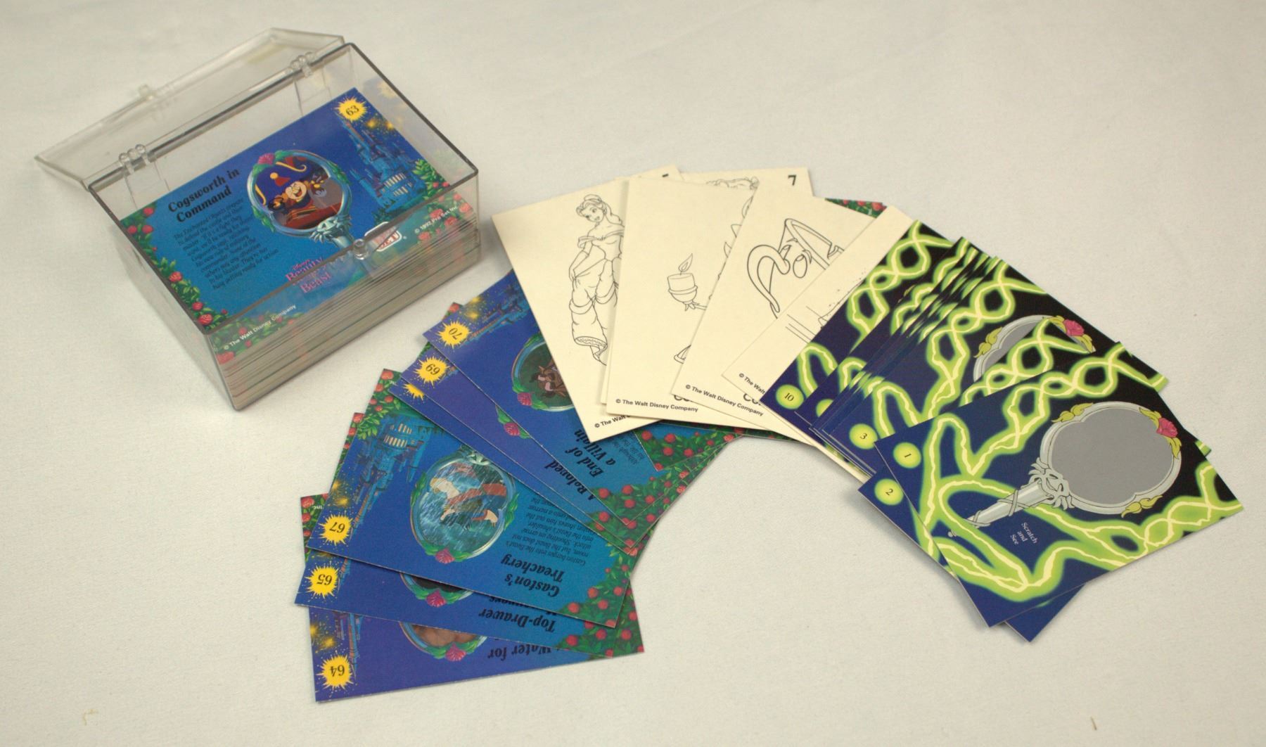 This is a Disney Pro Set Beauty and the Beast Trading Card set. The set is complete totalling all 75 cards plus a complete insert set of 10 Color In Cards and a complete insert set of 10 Magic Mirror Scratch off cards. All in in excellent condition and ready for grading. The Scratch and See cards are still fully intact and have not been scratched off to reveal the character on the card. There are 95 cards in total.