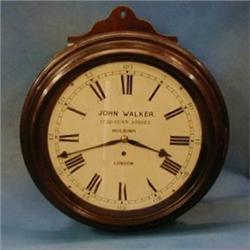 A 19th/20th Century fusee wall clock, the 12" painted dial with Roman numerals painted John Walker 77 Queen Street Holburn London, contained in a mahogany case ILLUSTRATED £300-400