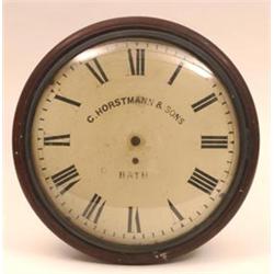A 19th Century Circular Mahogany Wall Clock, by G Horstmann and Sons, Bath, with domed glass front, and Roman numerals, (lacks movement), 37 cm £100-150