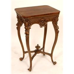 A 19th Century Continental Work Table, the rectangular rosewood lift up top above gilt decorated cabriole legs, joined by a cross stretcher, on knurl feet, 53 cm See illustration £150 - 200