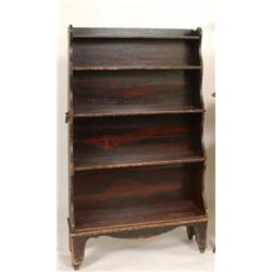 A 19th Century Faux Rosewood Waterfall Bookcase, the five graduated shelves above a shaped apron on