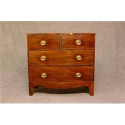A 19th Century Mahogany Bow Fronted Bachelors Chest of 2 Short and 2 Long Drawers on Bracket Feet. Oval Brass Drop Handles. Est. 280-350