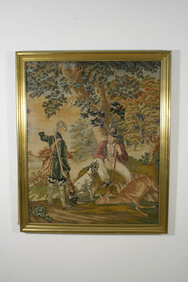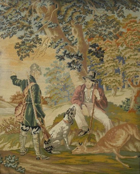 A 19th Century Needlepoint Depicting Hunters in a Landscape.