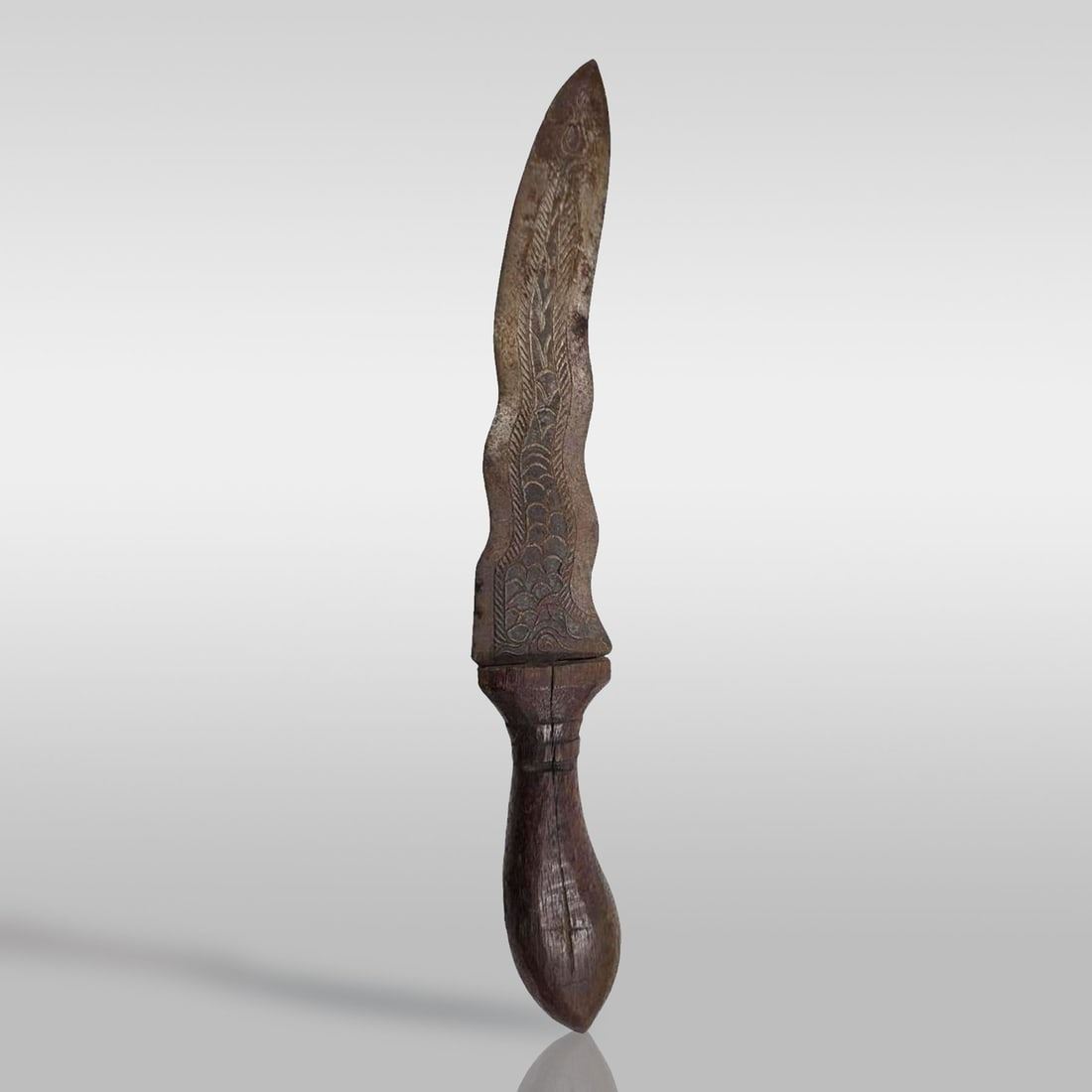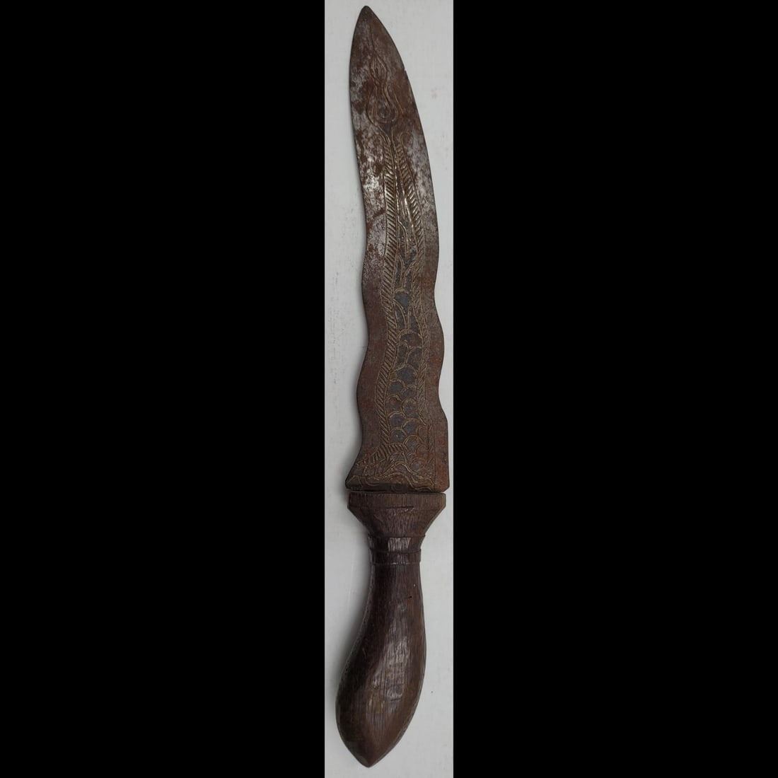**DUE TO THIS LOT BEING CLASSED AS A WEAPON IT MUST BE PAID VIA BANK WIRE TRANSFER OR CERTIFIED CHECK.**A 19th Century Tibetan Ceremonial Ritual Dagger. Measures approx. 11" X 1.75".