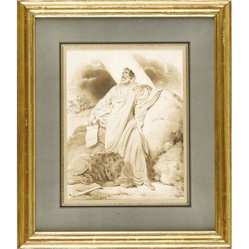 <B>An Italian 19th Century Watercolor</B></I><BR><BR>Unknown artist, Italian<BR>19th Century<BR>Watercolor and ink on paper<BR>12.25 inches x 10.5 inches (unframed)<BR><BR>Depicting the Prophet Daniel as he was often represented holding a scroll and with lions. Matted and in giltwood frame. <B>Condition Report:</B> Good condition with normal signs of wear as appropriate with age<BR><BR><b>Shipping:</b> Requires 3rd Party Shipping (<a target="_blank" href="http://www.heritageauctions.com/common/shipping.php">view shipping information</a>) <BR><BR><B>Important noti