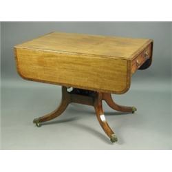 A 19th Century crossbanded mahogany Pembroke table, with two frieze drawers, raised on unusual...