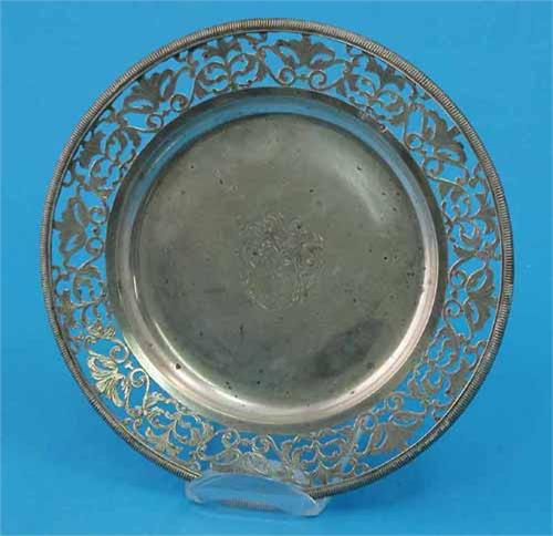A 19th century Austro-Hungarian 800 standard pierced circular waiter, with engraved central armorial, 7ins. £40-60