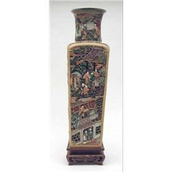 A 19th century Cantonese reticulated square tapering vase modelled with figures among pagodas £400-600