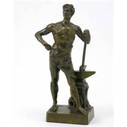 A 19th century French bronze figure of a blacksmith, in a life model pose with hammer and anvil,...
