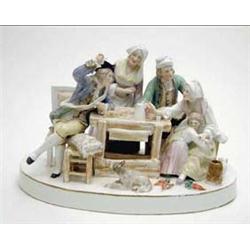 A 19th century French group of figures around a rustic table, a child and dog at their side, on oval base, 11.5ins £400-500