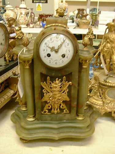 A 19th century French onyx mantel clock, H 39.5cms W 29cms £100-150