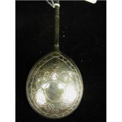 A 19th century Russian silver anointing spoon with engraved decoration, hallmarked 1880 Est. 100/...