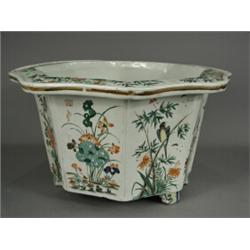 A 19th century Samson porcelain jardiniFre of octagonal form, with polychrome enamel floral decor...