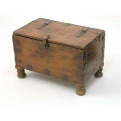 A 19th century Scandinavian miniature beech chest, with hinged lid and decorated throughout with incised bands and circles on turned feet, 12 ins £50-70