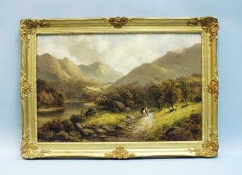 A 19th century Scottish landscape with figures. Oil on canvas. Signed William Langley, lower centre. 20" x 30". In gilt frame.