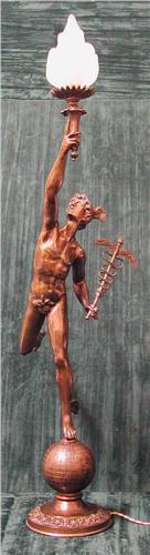 A 19th century bronze of Mercury on his globe, after the model by J Giambologna, now converted to lamp 46A A late 19th century French gilt bronze figure of a Greek god
